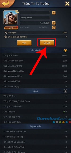 Bước 2: Khi giao diện Thông tin tù trưởng hiển thị, hãy chọn vào nút Cài đặt.