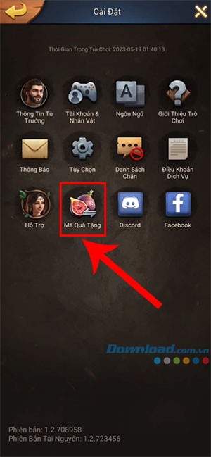 Bước 3: Trong cửa sổ Cài đặt, lựa chọn mục Mã quà tặng.