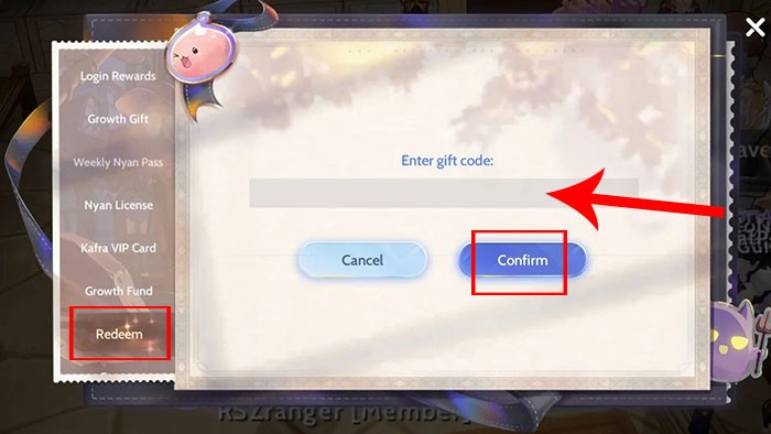 Giai đoạn 2: Chuyển sang tab Redeem. Tại đây, bạn có thể nhập mã code. Hãy đảm bảo nhập chính xác hoặc sao chép và dán mã code đã được cung cấp trước đó vào ô tương ứng.