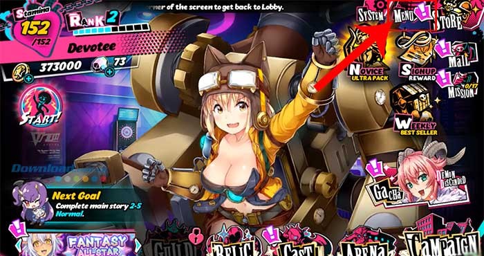 Bước 1: Khởi động ứng dụng Seven Mortal Sins X-TASY và chạm vào biểu tượng Menu, thường được đặt ở góc trên bên phải của màn hình giao diện.