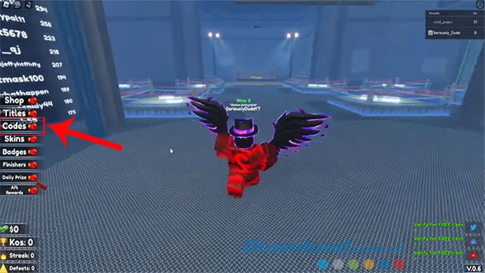Bước 1: Truy cập Shadow Boxing Battles trên nền tảng Roblox. Sau đó, hãy tìm và nhấn vào nút Codes, thường được đặt ở phía bên trái màn hình giao diện trò chơi.
