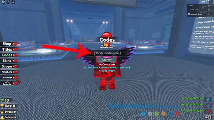Việc nhập mã code trong Shadow Boxing Battles vô cùng dễ dàng, tương tự như quy trình ở nhiều trò chơi Roblox khác. Dưới đây là các bước thực hiện chi tiết: