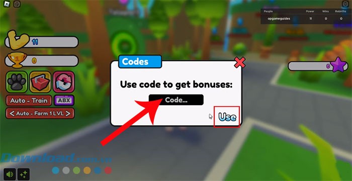 Việc nhập mã code trong Strong Leg Simulator là một thao tác dễ dàng, tương tự như quy trình nhập code ở nhiều trò chơi Roblox khác. Dưới đây là các bước thực hiện chi tiết: