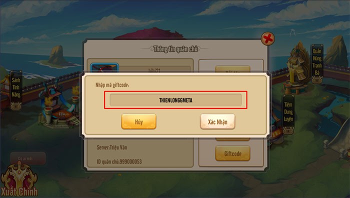 Bước 3: Tiến hành nhập chính xác mã code đã được cung cấp, hoặc bạn có thể sao chép và dán trực tiếp vào ô trống. Tiếp theo, nhấn nút Xác nhận để kích hoạt mã.