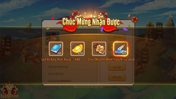 Bước 2: Một cửa sổ hiển thị Thông tin quân chủ sẽ hiện ra. Trong cửa sổ này, bạn chỉ cần chọn và nhấn vào nút Giftcode.