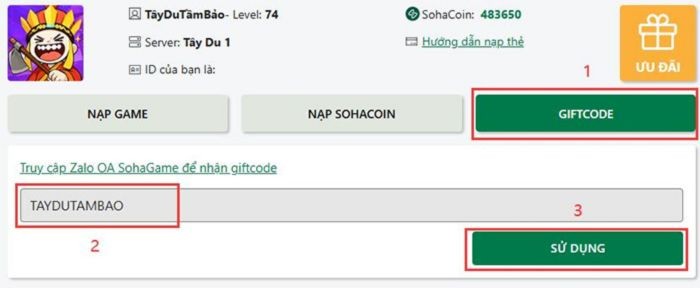 Việc nhập giftcode Tây Du Tầm Bảo của SohaGame để nhận thưởng là một quá trình đơn giản. Tuy nhiên, người chơi cần thực hiện thao tác này trên trang web đổi thưởng chính thức của SohaGame, theo các bước hướng dẫn chi tiết sau: