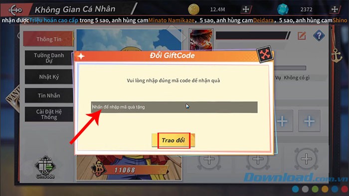 Bước 3: Điền chính xác mã code đã được cung cấp vào ô trống. Bạn cũng có thể sao chép và dán mã code để tránh sai sót. Cuối cùng, nhấn nút Trao đổi để nhận ngay những phần thưởng giá trị.
