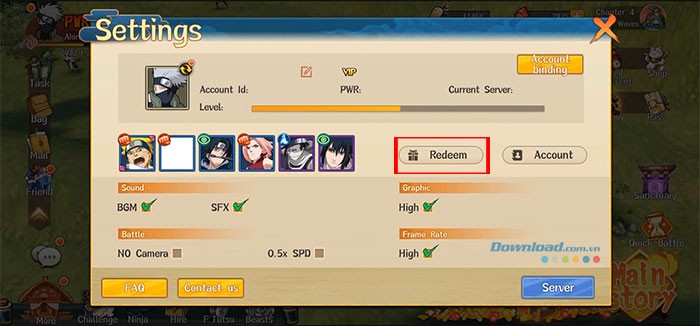 Hướng dẫn nhập mã code trong Ultimate Hokage Duel
