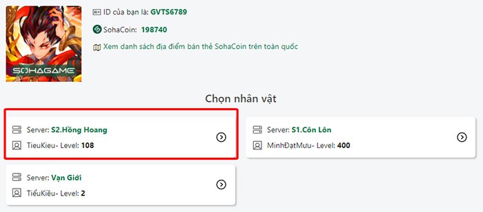 Bước 3: Xác định và chọn đúng server và nhân vật Vạn Giới PK mà bạn đang sử dụng.