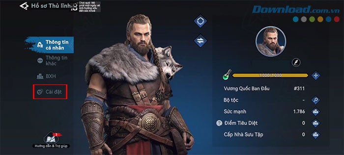 Một cửa sổ Hồ sơ thủ lĩnh sẽ hiện ra. Trong cửa sổ này, bạn cần chọn tab Cài đặt.