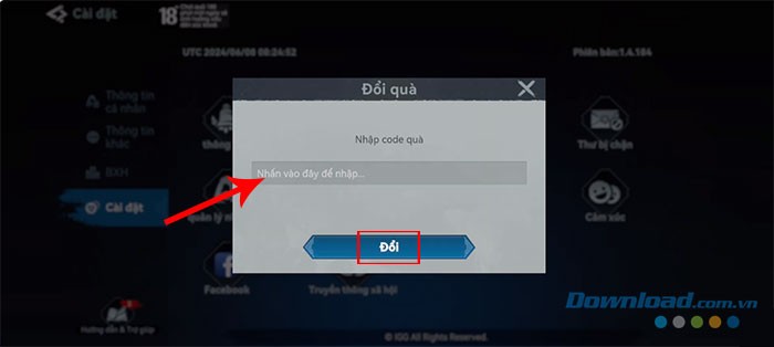 - Truy cập vào phần "Giftcode" hoặc "Đổi quà" trong game.