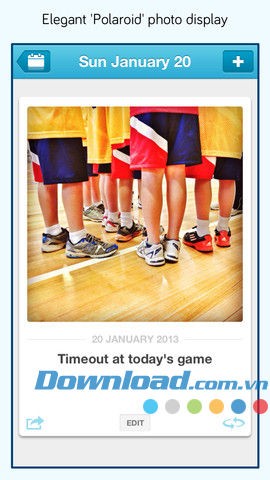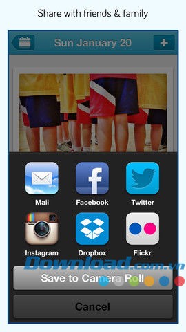 - Tích hợp chia sẻ đa nền tảng - chia sẻ những khoảnh khắc đáng nhớ hàng ngày, hàng tháng qua Twitter , Facebook hoặc email.