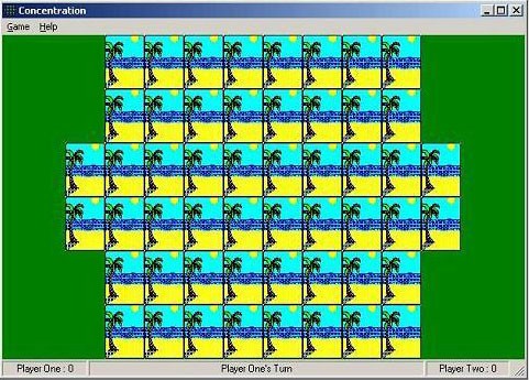 Concentration là một trò chơi trí tuệ dành cho hai người tham gia, bao gồm người chơi và máy tính. Bàn chơi được bố trí với 52 lá bài, được sắp xếp úp mặt xuống, đối diện với khu vực dành cho người chơi.