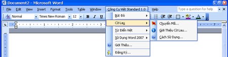 Sau khi cài đặt, CỜ LAU xuất hiện trong bộ Công Cụ Việt Standard 1.0 như sau: