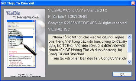 Với mục tiêu góp phần vào việc cải thiện chất lượng các văn bản tiếng Việt, VIEGRID đã phát triển bộ TỪ ĐIỂN VIỆT, tích hợp trong Công Cụ Việt Standard Edition. Bộ công cụ này giúp người dùng dễ dàng tra cứu và sử dụng từ ngữ một cách chính xác hơn. Từ điển Việt-Việt được xây dựng và hoàn thiện dựa trên nền tảng từ điển Hoàng Phê.