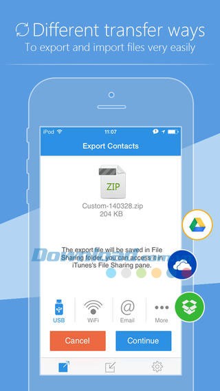 Ngoài ra, ứng dụng hỗ trợ xuất hoặc nhập danh bạ iPhone tới/từ tệp CSV của Gmail (sử dụng mã hóa UTF-8 hoặc Unicode).