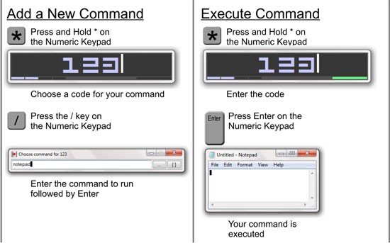 Việc cấu hình các lệnh được thực hiện thông qua giao diện trực quan. Bạn chỉ cần kích hoạt hộp thoại nhập liệu (bằng cách nhấn và giữ phím *), nhập mã số mong muốn, và sau đó nhấn phím Divide để liên kết lệnh mới.