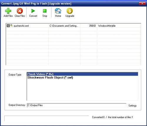 Convert Jpeg Gif Wmf Png to Flash là một công cụ hữu ích, đồng thời sở hữu sức mạnh đáng kể trong việc chuyển đổi các định dạng ảnh phổ biến sang video Flash (.swf & .flv).