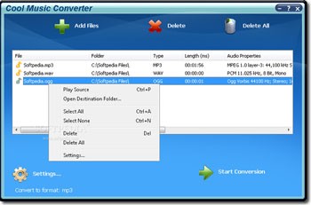 Phần mềm Cool Music Converter cung cấp khả năng chuyển đổi các tập tin âm thanh qua lại giữa nhiều định dạng khác nhau, bao gồm WAV, OGG Vorbis, MP3, MP2, Microsoft ADPCM, WMA, VOX, AAC, M4A, AMR và nhiều định dạng khác theo yêu cầu của bạn.