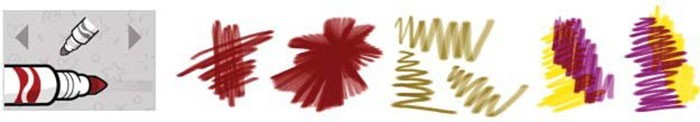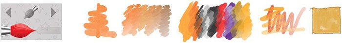 Brushes: Trong không gian làm việc, người dùng có thể tiếp cận tổng cộng 12 loại cọ vẽ khác nhau, được bố trí ở phía bên trái. Việc chuyển đổi giữa các loại cọ này có thể thực hiện thông qua menu thả xuống hoặc bằng cách sử dụng các mũi tên điều hướng trái/phải để cuộn.