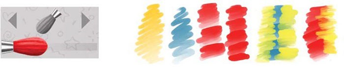 Khi kết hợp nhiều loại cọ khác nhau trong cùng một tác phẩm, ứng dụng sẽ tự động trộn màu và tạo ra các hiệu ứng độc đáo, đặc trưng cho từng loại Brush.