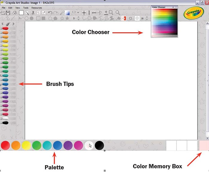 Các công cụ vẽ cơ bản trong Crayola Art Studio