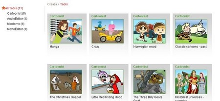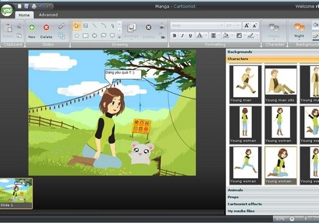 Creaza cung cấp 8 chủ đề với nhiều hình ảnh và nhân vật khác nhau, bao gồm Manga (hiện đại), Crazy (điên loạn), Classic cartoons – past (cổ điển)… Khi bạn chọn một chủ đề, giao diện Cartoonist sẽ xuất hiện với thiết kế ribbon quen thuộc của Office 2010, mang lại trải nghiệm trực quan.