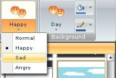 Bên phải màn hình là các thư viện chứa Background (phông nền), Characters (nhân vật), Animals (thú), Props (đồ dùng), Cartoonist effects (hiệu ứng hoạt hình) và My media files (thư viện cá nhân). Bạn có thể kéo và thả các yếu tố này vào khung biên tập để tạo ra những trang truyện tranh ưng ý. Bạn có thể dễ dàng thay đổi thời gian trong phông nền (ban ngày hoặc ban đêm) bằng cách sử dụng các công cụ trên thanh ribbon.