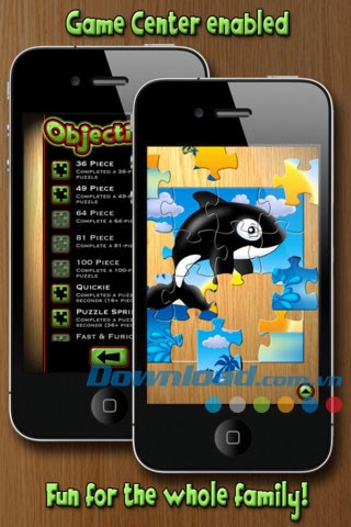 - Số lượng mảnh ghép có thể điều chỉnh: 100 mảnh trên iPhone và iPod, 400 mảnh trên iPad.