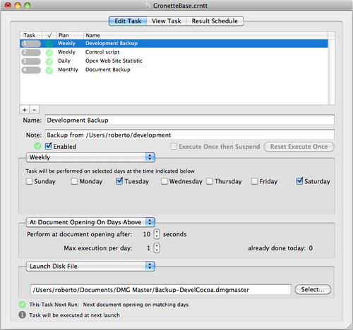Việc thiết lập các tác vụ trong Cronette diễn ra một cách đơn giản và trực quan. Tất cả các tác vụ đã được cấu hình sẽ được trình bày rõ ràng trong một bảng điều khiển.