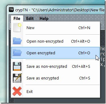 Để mở khóa tài liệu, bạn có hai cách: mở file text mã hóa từ chương trình hoặc mở file văn bản bình thường. Nhấn vào biểu tượng "Open" hoặc sử dụng phím tắt Ctrl+O để giải mã nội dung. Khi hộp thoại yêu cầu mật khẩu xuất hiện, hãy nhập mật khẩu chính xác > nhấn "Enter". Bạn cũng có thể tạo một file mã hóa mới bằng cách vào menu "File" > "New (Ctrl+N)". crypTN còn cho phép bạn soạn thảo văn bản thông thường như trên Windows Notepad.