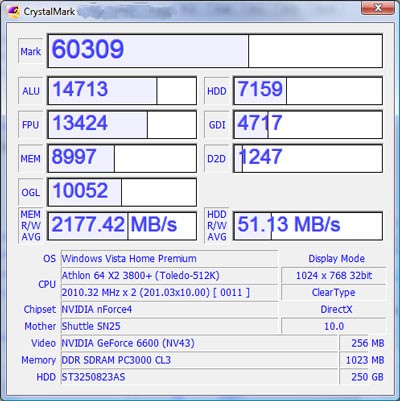 CrystalMark là công cụ benchmark chuyên dụng, dùng để kiểm tra hiệu suất của các linh kiện phần cứng như CPU, RAM, HDD và card video.