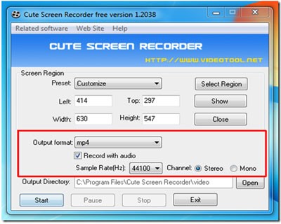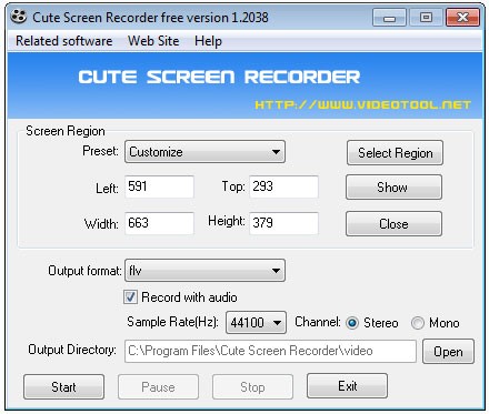 Cute Screen Recorder phiên bản miễn phí có thể được sử dụng để ghi lại video flash trực tuyến.