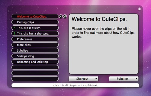 CuteClip 3 là một ứng dụng hỗ trợ clipboard lý tưởng trên hệ điều hành Mac OS X. Ứng dụng này hòa nhập một cách liền mạch vào giao diện Mac OS X, đảm bảo không gây bất kỳ trở ngại nào cho trải nghiệm người dùng.