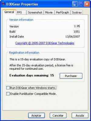 Hộp thoại D3DGear Properties cung cấp nhiều tùy chọn cấu hình, được chia thành các thẻ khác nhau: