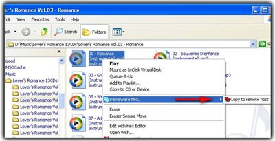 Trên Windows Explorer, chuột phải vào file cần truyền lên máy Remote. Trên menu chuột phải, chọn DameWare MRC > Copy to remote host. Sau khi quá trình truyền file hoàn tất, trên cửa sổ chính của DWMRC, chọn menu SFT > Open Remote Upload Folder. Khi đó, trên máy Remote sẽ chạy Windows Explorer để mở thư mục C:\Windows\DWRCS Uploads, là thư mục mặc định chứa các file được truyền đến.