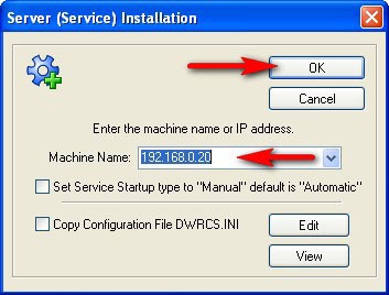 - Cách 1: Trên giao diện của chương trình chính DWMRC, chọn menu File > Install Service. Xuất hiện hộp thoại Service Installation.