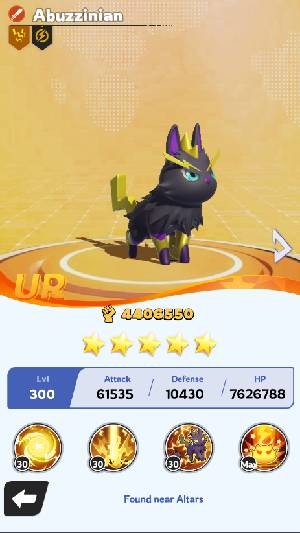 Abuzzinian là Palmon nguyên tố Sét, đạt độ hiếm 5 sao và thuộc nhóm Tích điện (Charge).