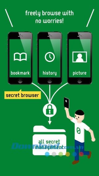 - Với Data Confidant for iOS, người dùng có thể yên tâm rằng thông tin duyệt web và bookmark của mình sẽ không bị lộ khi sử dụng ứng dụng như một trình duyệt bí mật.