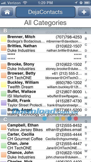 Ứng dụng cung cấp khả năng phân loại số liên lạc nâng cao, bao gồm tên, họ, tên công ty, danh mục, thành phố và mã vùng.