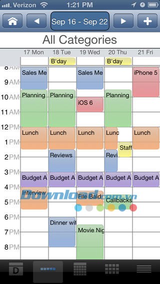 - Phân loại sự kiện bằng màu sắc, tương thích với Microsoft Outlook.