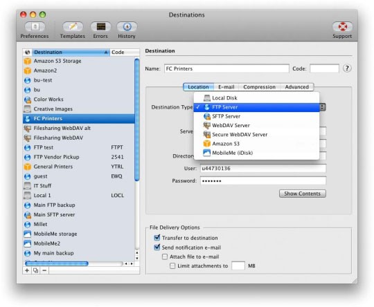 - Hỗ trợ nhiều giao thức phổ biến như FTP, SFTP, WebDAV, MobileMe, Amazon S3, AFP, SMB và các thư mục cục bộ.