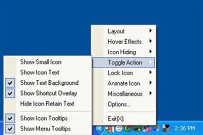 Để khám phá toàn bộ các tính năng của Desktop Icon Toy, bạn hãy nhấp chuột phải vào biểu tượng của chương trình trên khay hệ thống và chọn các hiệu ứng mong muốn: