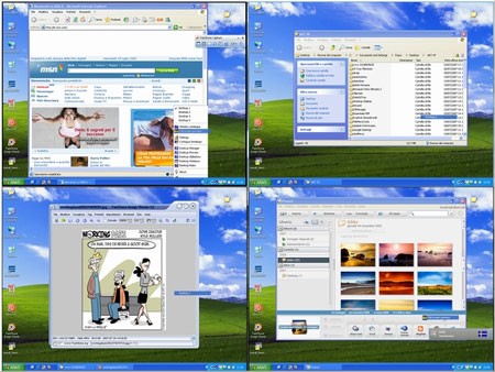Một cách khác để xem nhanh và chọn Desktop là nhấp đúp chuột trái vào biểu tượng Dexpot trên khay hệ thống. Màn hình Desktop sẽ được chia thành 4 phần, giúp bạn dễ dàng quan sát và lựa chọn.