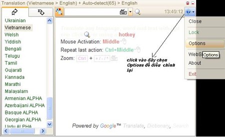 - Dịch nhanh chóng bằng cách chỉ cần nhấp chuột vào từ hoặc cụm từ cần dịch, không cần chọn vùng văn bản.