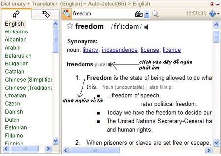 Phần mềm còn cung cấp các định nghĩa chi tiết về từ ngữ mà bạn quan tâm, đồng thời hỗ trợ chế độ đọc từ ngữ để nâng cao khả năng hiểu.