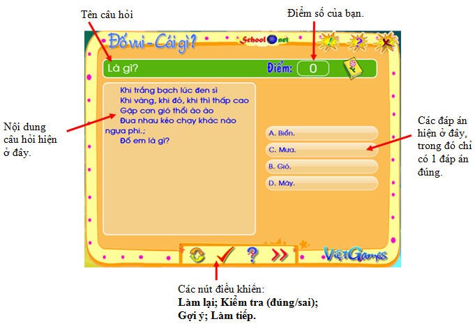 Để tham gia trò chơi, bạn chỉ cần nhấp chuột vào đáp án mà bạn cho là đúng trong khung bên phải màn hình.