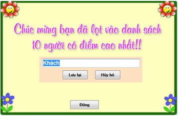 Nếu bạn đạt được tổng điểm trên 100, phần mềm sẽ tự động tính toán và đưa bạn vào danh sách những người chơi có điểm số cao nhất.