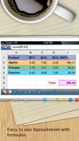 Documents Free cho phép người dùng chỉnh sửa và quản lý các bảng tính cũng như các tệp văn bản trực tiếp trên iPhone. Ứng dụng hoạt động hiệu quả cả khi có kết nối internet và khi ngoại tuyến. Hơn nữa, người dùng có thể đồng bộ hóa các tệp tin với tài khoản Google Documents và mở chúng trên máy tính cá nhân (PC) hoặc máy Mac.