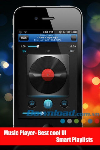 - Phát nhạc với các định dạng .aac, .wav, .mp3 và .m4a.